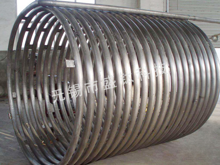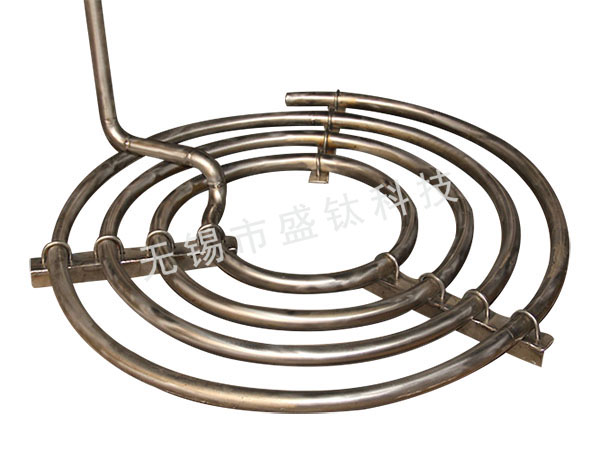 6、鈦盤管在某些介質(zhì)中不耐腐蝕如:氫氟酸、氟硅酸、濃度高于3%的鹽酸、發(fā)煙硝酸、濃度高于4%的硫酸、不充氣的沸騰甲酸等。